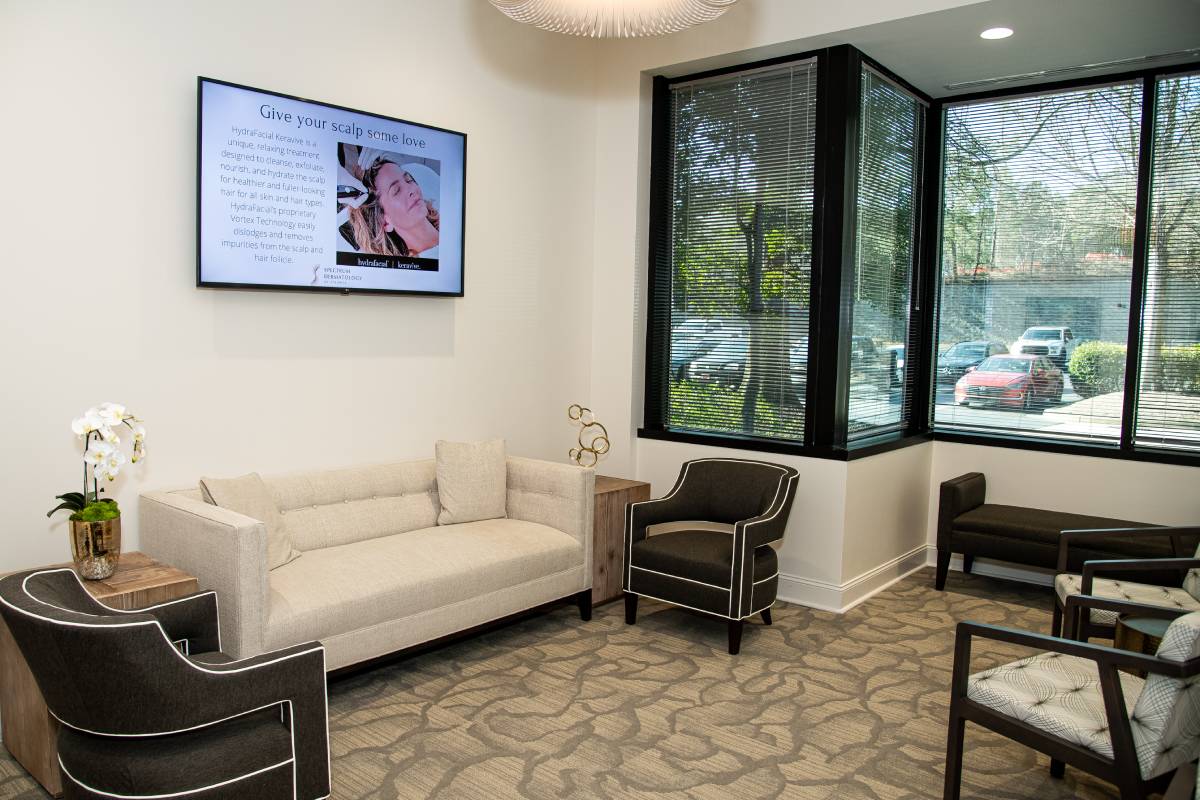 Dermatology of Atlanta logo. 1725 is the building on your left. - Turn left into the parking lot and look for the reserved parking spots for patients.